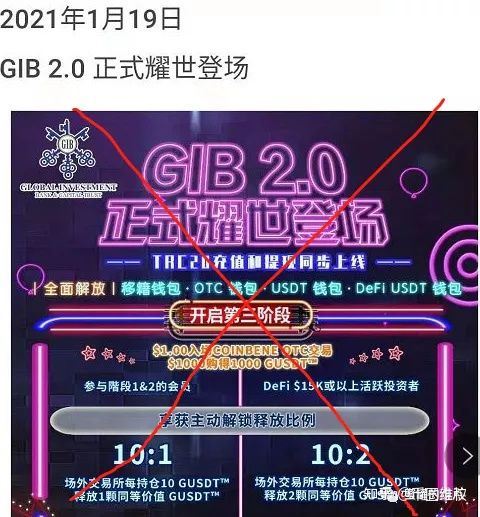 GCG外汇骗局至此也应该彻底结束了,于是乎,旧的项目就此过去,新的骗局即将上演。 第三段故事:从外汇跨界到虚拟币继续欺骗 经历了两年的欺骗,邱富豪还缺钱么?答案是肯定不缺的,从20年开始,他嗅到了币圈的韭菜香,开始跨界搞虚拟币。 GIB数字骗局来了,项目代币名称GUSDT。 邱富豪信誓旦旦的声称GUSDT将来会上众多交易所,早期会员只需花300美金购买3000个GUSDT钜达币,众人开始半信半疑,参与者众多,观望者也很多。 终于在去年底12月份,GUSDT确实上线了几个三线交易所,前面已经有提及。 币价也从1美金涨到了最高上百美金。会员们纷纷重拾信心,认为机会来了,开始不断的在内盘购买追高(这时还不能提到交易所)。 公司声称1月18日会员就可以提到交易所买卖,就是在这期间的一个多月时间里,邱富豪再一次欺骗了大量的受害者。 交易日到了,正当大家兴致勃勃准备暴富的时候,邱富豪再次端起一盆凉水浇在会员们的头上,醍醐灌顶呀! 公司公告宣称,为了维护币价稳定,避免砸盘现象,将以10:1的比例释放会员手中的GUSDT币。这也就意味着会员需要在交易所购买10个GUSDT币,才能释放钱包中的1个币。