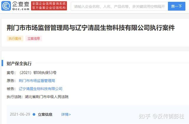 日前,据企查查显示两起关于辽宁清晨生物科技有限公司(简称:清晨生物)的立案信息,据该两条信息显示,清晨生物于6月份两度遭到立案。