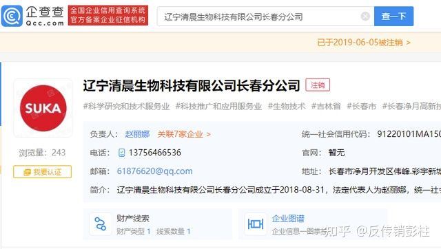 图源:企查查 此外,据企查查显示,浙江神韵商贸有限公司大股东及实际控制人为赵丽娜,其名下关联7家公司,其中曾为辽宁清晨生物科技有限公司长春分公司法定代表人。不过该公司于2019年6月5日已被注销。