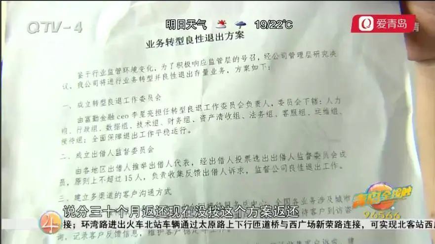 游先生:我爸爸在富勤财富一共投了三十六万,分三次投的,一次投了十一万,一次投了十五万,一次投了十万,总共三十六万。富勤当时签的协议是一年一返、满十二个月一返,本金和利息就返回来了,年利率11%,一年到期了然后提不出来,我爸妈不懂让我看看什么情况,就是P2P爆雷,后来签了一个协议,业务转型良性退出方案。