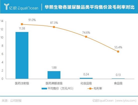 在颜值即正义时代,玻尿酸成了众多爱美人士离不开的美颜神器,被誉为上帝用来制造亚当和夏娃的黏土,广泛应用于医疗、医美领域、各类化妆护肤产品中。 没有玻尿酸,很多女明星都活不下去!明星大S曾如是说。 在颜值即正义时代,玻尿酸成了众多爱美人士离不开的美颜神器,被誉为上帝用来制造亚当和夏娃的黏土,广泛应用于医疗、医美领域、各类化妆护肤产品中。 这还远远不够,瞄准女性消费者对美的极致追求,玻尿酸的内涵和外延正在无限扩大,渗透到人们生活的方方面面。 玻尿酸饮用水、玻尿酸气泡水、玻尿酸软糖等如雨后春笋般冒出来;还有商家将玻尿酸原液加入T恤和床上四件套中,称在穿衣睡觉过程中都可以养肤变美;可爱的猫猫狗狗也要消费升级,打着帮助主子们强健关节、光滑皮毛的口号,玻尿酸被加入宠物粮。 一个万物皆可玻尿酸的时代来临,一张以美丽为名的网正编织得越来越密。 而这一切的幕后推手——全球最大的玻尿酸厂商华熙生物(290.000, 11.90, 4.28%),自然赚得盆满钵满。其7月1日发布的业绩快报显示,2021年上半年,公司的营业收入预计增长95%-105%,净利润与扣非净利润预计分别增长30%-40%、25%-40%。 玻尿酸食品元年 世界玻尿酸看中国,中国玻尿酸看山东。全球玻尿酸销量排名前五的企业均为清一色的山东企业,其中以华熙生物为首。 ![]() 玻尿酸广泛分布于人体的结缔组织、上皮组织和神经组织内,以良好的保水性、润滑性、黏弹性、生物降解性及生物相容性等特征而闻名。早期的玻尿酸采集,是从动物组织中提取,1公斤的玻尿酸需要从200多公斤的鸡冠中提取,成本高、效率低、质量差。 华熙生物的前身山东福瑞达生物化工有限公司,联合山东省药学科学院、山东正大福瑞达制药有限公司、中国玻尿酸之父凌沛学等,首创了微生物发酵法,降低了玻尿酸的生产成本,提升了产业化和规模化程度,从而奠定了华熙生物全世界最大的玻尿酸生产及销售企业的行业地位。 弗若斯特沙利文的报告显示,中国2018年玻尿酸原料的总销量已经占据全球总销量的86%,全球前五大供应商——华熙生物、焦点生物、阜丰生物、东辰生物、安华生物全部来自山东。 玻尿酸可应用于医疗、化妆品和功能性食品领域。相比国外玻尿酸在食品领域的应用,国内的食品级玻尿酸还是一片蓝海。 ![]() 据英敏特全球新产品数据库数据,截至2020年5月,全球含玻尿酸的食品共有2000多个,其中普通食品554个,涵盖饮料、酸奶、口香糖、果酱、果冻、沙拉酱、茶粉、速溶汤、蜂蜜、软糖、面条、绿茶等。 早在2004年,华熙生物就启动了在食品中添加玻尿酸的申报。直到2021年1月7日,卫健委才正式批准华熙生物以玻尿酸为新食品原料的请求,产品使用范围从原来的仅作为保健食品原料添加剂,扩大到乳及乳制品、饮料类、酒类、可可制品、巧克力和巧克力制品(包括代可可脂巧克力及制品)以及糖果、冷冻饮品。 乘着政策的春风,今年以来国内掀起了一股可食用玻尿酸风潮,一大批玻尿酸食品争先亮相,各种玻尿酸饮用水、气泡水、新茶饮、酸奶、糖果等层出不穷。 华熙生物率先推出了国内首个玻尿酸食品品牌黑零,包括透明质酸咀嚼片、软糖、西洋参饮等6款产品,主打降瘦身、安眠舒压、护肝养胃、美白抗氧化等功效;后又推出首款玻尿酸饮用水水肌泉,让消费者美美地喝水,喝水美美的;甚至还有玻尿酸宠物粮,据称具有降低关节病、保护肠胃、为宠物皮毛补水的奇效。 福瑞达医药也不甘落后,推出了口服玻尿酸产品善颜口服透明质酸钠。 布局玻尿酸食品赛道的还有各类食品公司、保健品公司,个个宣称吃了就能变美、喝出水光肌、养出少女肌。 网红饮料品牌汉口二厂推出首款玻尿酸气泡水哈水,称一瓶相当于4次面膜、3支美容剂的玻尿酸添加量;营养代餐食品品牌WonderLab上市首款口服玻尿酸软糖;屋里可可推出玻尿酸可可粉SuperCocoa;乐纯酸奶推出玻尿酸酸奶你好剪;乐乐茶推出含有玻尿酸成分的粉椰水光冻;SMEAL司缪推出玻尿酸血橙饮;老字号同仁堂(35.980, -0.21, -0.58%)推出植物饮料透明质酸钠烟酰胺饮;汤臣倍健(29.430, 0.29, 1.00%)推出玻尿酸口服液Yep水光瓶…… 这些食品里面的玻尿酸原材料,大都来自华熙生物,比如WonderLab、汉口二厂、屋里可可、乐纯、乐乐茶、同仁堂等。 正如华熙生物董事长兼总经理赵燕在7月9日的研讨会上所说:今年是透明质酸钠应用于普通食品的‘元年’。 B端到C端的战争 在这场可食用玻尿酸的革命中,华熙生物无疑是主要推动者。 早期华熙生物靠微生物发酵法奠定了行业地位,但随着技术的普及,玻尿酸生产厂家不断增加,原料市场已接近饱和,竞争越来越激烈,价格也不断下跌。 凌沛学曾向媒体表示,玻尿酸原料近十年一直在降价,平均每年的降幅在5%左右。他认为全球的原料需求不会超过1000吨,现在我会劝退那些找我咨询想投原料厂的,因为产能已经过剩了。 医药级、化妆品级、食品级三类玻尿酸原材料,随着制作技术难度逐步下降,对应的毛利率也一路走低。只有医疗级原料由于生产要求更为严格,且销售需要通过国家药监局的认证,这一认证过程耗时短则2-3年、长则5年以上,准入门槛较高,依然维持着较高的毛利率。 对应到营收表现上,原料产品已经不是华熙生物的最大收入来源。财报显示,2020年其原料产品收入、功能性护肤品收入、医