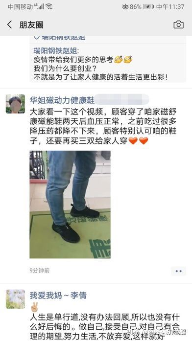 近日有网友反应一双神奇的鞋,看它宣传的貌似包治百病一样!在成立微信群疯狂宣传,疯狂的拉人头,号称穿上鞋就能治好,高血压,月经不调,痛风,静脉曲张,号称有18颗芯片,却是三无产品,就这么一双鞋子,在市场上疯狂的骗钱,骗人,却没有人管!希望广大群众当心受骗上当。如果真有这样的效果的话,医院早倒闭了!下面就是磁舒康的案例跟制度: