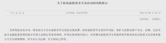 | 突发!虚拟货币又遭重锤 比特币大王被捕 价格瞬间闪崩 超23亿元爆仓继全面封杀虚拟货币挖矿之后,监管部门又出手了。7月6日,北京市地方金融监督管理局和人民银行营业管理部联合发布风险提示,郑重警告相关机构,不得为虚拟货币相关业务活动提供经营场所、商业展示、营销宣传、付费导流等服务,还查封了一家为虚拟货币相关业务活动提供服务的机构。随后,比特币价格出现闪崩。 主力资金加仓名单实时更新,APP内免费看>> 继全面封杀虚拟货币挖矿之后,监管部门又出手了。 7月6日,北京市地方金融监督管理局和人民银行营业管理部联合发布风险提示,郑重警告相关机构,不得为虚拟货币相关业务活动提供经营场所、商业展示、营销宣传、付费导流等服务,还查封了一家为虚拟货币相关业务活动提供服务的机构。 ![]() 图片来源:人民银行营业管理部网站 随后,比特币价格出现闪崩,瞬间暴跌1000美元,超23亿元资金在几小时内爆仓。 交易软件公司被责令注销 北京市地方金融监督管理局和人民银行营业管理部7月6日联合发布关于防范虚拟货币交易活动的风险提示(下称提示)。 提示表示,近期,北京市地方金融监督管理局联合中国人民银行营业管理部、怀柔区政府相关部门,对涉嫌为虚拟货币交易提供软件服务的北京取道文化发展有限公司予以清理整顿,责令该公司注销,官方网站已停用。 提示郑重警告辖内相关机构,不得为虚拟货币相关业务活动提供经营场所、商业展示、营销宣传、付费导流等服务。辖内金融机构、支付机构不得直接或间接为客户提供虚拟货币相关服务。 有业内人士表示,此举主要打击对象或为宣传虚拟货币相关内容的币圈媒体。 同时,监管部门提醒广大消费者,应增强风险意识,树立正确的投资理念。不参与虚拟货币交易炒作活动,不盲目跟风虚拟货币相关投机行为,谨防个人财产及权益受损。要珍惜个人银行账户,不用于虚拟货币账户充值和提现、购买和销售相关交易充值码以及划转相关交易资金等活动,防止违法使用和个人信息泄露。及时举报虚拟货币交易相关违法违规线索,对其中涉嫌违法犯罪的,应及时向公安机关报案。 监管动作频频 对于打击虚拟货币交易炒作,近期监管部门动作频频,同时也多次提示炒作虚拟货币存在多重风险。此前中国人民银行有关部门就银行和支付机构为虚拟货币交易炒作提供相关服务问题,约谈了工商银行、农业银行、支付宝(中国)网络技术有限公司等部分银行和支付机构。参会机构表示,将进一步加大排查和处置力度,采取严格措施,坚决切断虚拟货币交易炒作活动的资金支付链路。 中南财经政法大学数字经济研究院执行院长盘和林表示,对虚拟货币交易限制的文件在2017年就已经出台。最近,对于非法虚拟货币交易的政策进一步收紧,政策面也强调了虚拟货币交易属于非法。此次北京市的整治行动,正是政策落到实处的体现。 盘和林称,虚拟货币过去几年在全球范围内产生了一波炒作,海外金融机构有很多参与其中。但虚拟货币不具备担保属性,价格存在高波动性,这些都可能导致泡沫破裂,风险向金融机构传导。我国监管部门采取行动,正是为了阻断虚拟货币风险的传导,践行金融审慎原则。所以,各地查处虚拟货币交易活动的行为是及时和必要的。 单日爆仓超23亿元 受上述消息影响,7月6日下午17时起,比特币价格急转直下,瞬间暴跌1000美元,暂报34109美元。较4月14日的年内最高点64900美元,几近腰斩。 期货合约市场更是损失惨重。UAlCoin数据显示,虚拟货币合约一日内共爆仓超23亿元人民币,超1万多头惨遭血洗,最大单笔爆仓高达4588万元。 ![]() 图片来源:UAlCoin glassnode数据显示,比特币交易活跃地址已创下今年以来新低,交易活跃度也走向了今年的底部区间,关注的人数逐渐减少。 alternative.me显示,7月6日,虚拟货币交易情绪指数降至20,处于极度恐慌状态。最近一周,对于后市表现持悲观态度的投资者居多。诸多分析表示,很难看到比特币会出现转机。 有虚拟货币分析师指出,虽然近期比特币反弹有明显成交量放大现象,但与之前下跌过程中几次大的卖出量能相比依然较小,而且季线、月线等重要的中长期成本线仍处于向下状态,很难改变熊市格局。 比特币大王被捕 据媒体报道,当地时间7月5日,巴西联邦警察宣布,在巴拉那州库里提巴逮捕了加密货币洗钱团伙Bitcoin Banco的成员及其领导人、号称比特币大王的克劳迪奥·奥利维拉(Claudio Oliveira)。现场查获了豪华汽车和大量珠宝、现金。 据悉,这位比特币大王被逮捕的原因是涉嫌欺诈和侵吞客户资金,涉案金额高达15亿雷亚尔(约合人民币19亿元)。2019年,该集团曾向巴西政府申请司法恢复财产,理由是代客户保管的7000多枚比特币神秘消失。 近期,随着区块链、比特币等虚拟货币财富效应的持续热炒,不少抱着财富自由幻想的投资者陷入不法分子精心设计的虚拟货币投资骗局中。今日下午,比特币大王被捕登上微博热搜,有网友表示大快人心。 |