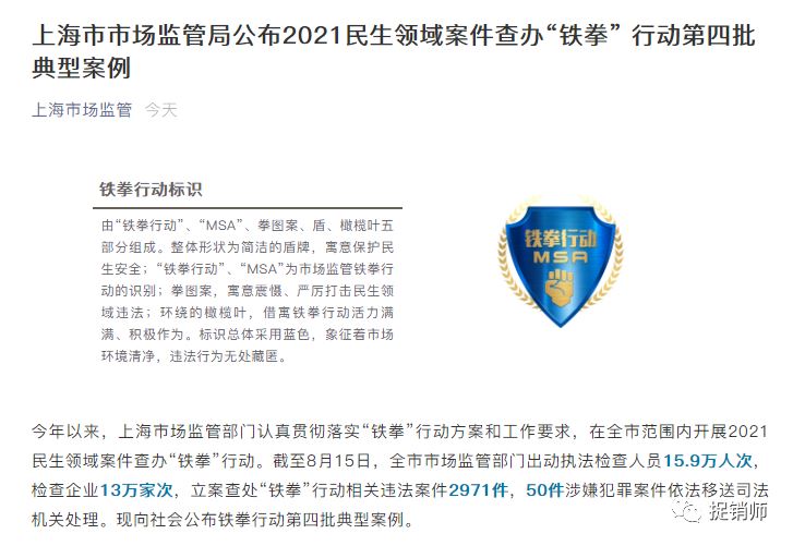 8月26日讯(记者 钟文鑫)据上海市市场监管局微信公众号消息,26日,上海市市场监管局公布2021民生领域案件查办铁拳 行动第四批典型案例。其中,上海览海门诊部有限公司(以下简称览海门诊)因涉嫌发布虚假广告,被浦东新区市场监管局依法罚款20万元。