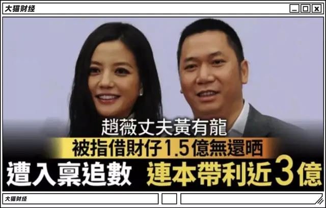不过证监会并没有听这套说辞,还是给出了罚单,共120万的罚款以及两人5年的市场禁入。 罪定了,钱罚了,符合条件的投资者可以索赔了。 但是维权路太艰难了,从2018年开始,就有投资者开始诉讼,但是战线拉得都很长,一审败诉后,赵薇、万家文化(现名:祥源文化)基本上都会上诉,而一些案件的二审已经拖到了今年。 赵薇二审依然败诉,但是这钱啥时候能赔还未可知。 而赵薇老公黄有龙的债务,也要追溯到2016年。 根据港媒的披露,2016年8月,黄有龙和一家名叫明诺国际的财务公司贷款1亿港元,为期1年,月利息200万港元,年利率约24%,刚好卡到高利贷的门槛。 10月份,又借了一笔5000万港元,月利息100万,3个月内还清。 但是,2017年6月黄有龙的还款支票就无法兑现了,本该还了的钱,就这么拖下来了。 明诺国际眼看要不回钱来,就在2018年11月,把债权打包,卖给了比较擅长讨债的万汇公司,但是最终万汇公司在黄有龙这里也没有讨到什么好处,只好拿起了法律武器。 万汇公司表示,第一笔贷款的本息已经累计到1.99亿港元,第二笔贷款的本息也有9895万,连本带利,差不多3亿,接近翻倍了。