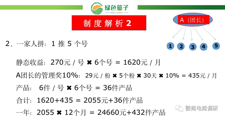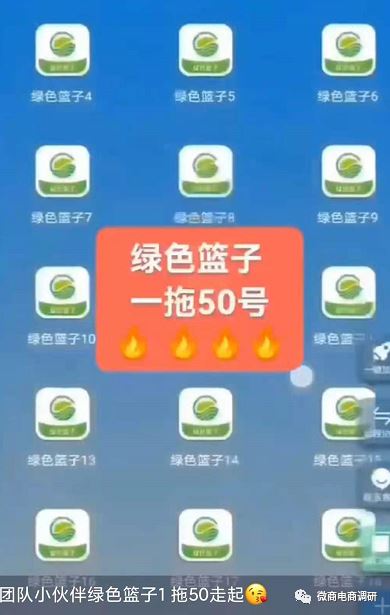 眼下,关于绿色篮子的玩法,除了上文提到的一家人、一拖五的玩法以外,更有甚者,一拖五十的玩法也已出现在了推广人员的朋友圈中。