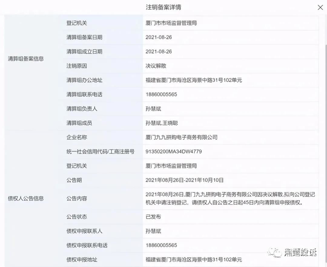 此外,据天眼查APP还显示,2021年08月26日,厦门九九拼购电子商务有限公司因决议解散,拟向公司登记机关申请注销登记,请债权人自公告之日起45日内向清算组申报债权。 那么,拼购模式为何有会有涉嫌传销风险呢?据一位专业研发拼购系统人士介绍:拼购作为新兴商业模式,很多见钱眼开的人非常容易走偏路,看似平台流水过亿,实则直接踩到了法律红线。因为很多企业根本不会设置或者考虑利润拨比,只想纯玩一套模式,设置高提现门槛,用‘后浪’补‘前浪’,甚至采用多级分销模式,后期套现跑路崩盘。 文章来源:北青网降,特此鸣谢! 转载声明:遵守CC协议,版权归原作者所有,如有侵权请联系我们删除返回搜狐,查看更多 |