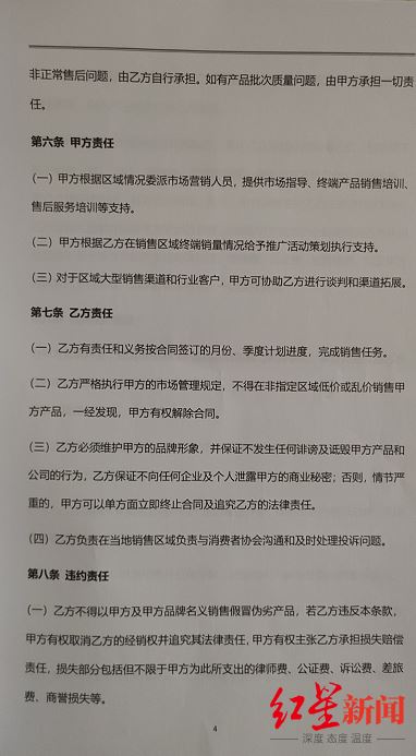 经销商合同中列明的甲乙双方责任。专家建议,在所有的合同签署过程中,最好是将前期的承诺和投资回报形成书面文字以备查验。 此外,谭敏涛还表示,在签订合同前,甲方公司对外承诺,共享洗衣液赚钱方便,来钱快,是央视展播品牌,所以才会有经营者愿意签订合同,但在签订合同后,不断出现质量问题,导致经营者无法回收成本,更无法赚到钱,那么,该公司就涉嫌虚假承诺和宣传,经营者有权要求其提供合格的产品和优质的服务,或是要求其退款。 面对共享经济的大饼,谭敏涛提醒广大经营者在选择合作商户时,一定要谨慎投资,尽量选择资质齐全,实力较强,信用良好的公司,现在的共享经济,不乏一些公司打着共享经济的幌子,实际是在骗拳营者的投资款,只要把经营者的投资款骗到手,未来是否会让经营者盈利便不再考虑。同时,他也建议各经营者,在所有的合同签署过程中,最好是将前期的承诺和投资回报形成书面文字以备查验,而不是简单的口头语言予以承诺。 红星新闻记者 罗梦婕 编辑 张寻 |