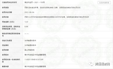 据悉,该处罚通知书文号为南武市监罚﹝2021﹞199号,处罚日期为2021年8月4日。依据禁止传销条例规定,宁市武鸣区市场监督管理局对当事人广西康佳龙现代农业科技有限责任公司罚款12.0万元并没收违法所得0.08万元。