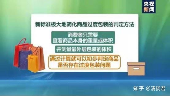 新标准将于2023年9月起实施。那么新标准将给市场带来哪些新变化呢? 目前市场上,部分食品和化妆品企业对产品过度包装,并将成本转嫁到消费者身上,既浪费了资源,又增加了消费者负担,更对环境造成了污染。 何为过度包装? 包装层数过多、空隙率过大或成本过高就是过度包装。 对此,新标准规定了包装空隙率、包装层数和包装成本要求,以及相应的计算、检测和判定方法。 具体内容包括:一是规范了31类食品、16类化妆品的包装要求,包括护肤水、散粉、洗护、牙膏等; 二是极大地简化了商品过度包装的判定方法,消费者只需要查看商品本身的重量或体积,并测量最外层包装的体积,通过计算就可以初步判定商品是否存在过度包装问题; 三是严格限定了包装层数要求,食品中的粮食及其加工品不应超过三层包装,其他食品和化妆品不应超过四层包装。
