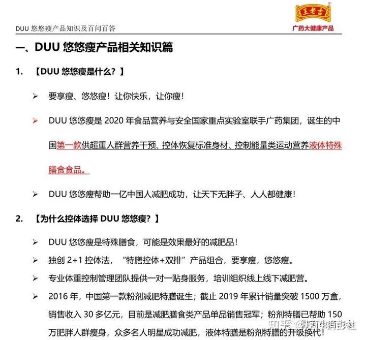据全球营养改善联盟(GAIN)在华盛顿发布的全球营养不良状况报告显示,中国逾3亿人属于超重和肥胖人群,其中7%的人群为5岁以下儿童。专家指出,超重与肥胖人数庞大,与饮食量、饮食结构不合理和运动缺乏有关。有业内人士指出,中国BMI大于28以上的肥胖人群现已突破1亿,肥胖率已突破10%,其中城市成年人体重超重者已经突破40%。世界卫生组织(WHO)近年对影响人类降的因素的评估结果也表明,膳食营养因素的影响(13%)仅次于居首位的遗传因素(15%),远高于医疗因素(仅8%)的作用。于是乎,在这样的背景下,一些以特殊膳食身份宣传减肥功效的食品在国内微商领域当中开始崭露头角,悠悠瘦就是其中的典型之一。 近来在微商市崇头正劲的悠悠瘦(英文简称:DUU)究竟是一款怎样的微商品牌?相关产品具有怎样的功效?299元可瘦5到8斤是否确有其事?比食品更有效,比药品更安全,比保健品更科学的说法从何而来?有关奖金制度该如何解读?
