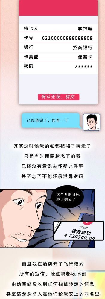 写在最后: 个人金融信息范围很广,一般是指金融机构通过提供金融服务获取、加工和保存的个人信息,包括账户信息、密码信息、金融交易信息、个人身份信息、财产信息、借贷信息等。 具体来说,可能会被利用来施骗的金融隐私,包含银行账户、支付账户、余额、银行卡密码、支付密码、登录密码、交易密码、短信验证码等,获取信任的信息,包含姓名、职业、婚姻状况、收入情况、身份证件、联系方式等个人隐私。 此外,个人财产信息也很重要,如个人收入、不动产、车辆、公积金存缴金额等。其他如个人消费习惯、支付习惯、投资意愿等,都可能被骗子利用。 个人金融信息泄露,轻则被短信、电话骚扰,重则可能被不法分子利用,用于注销校园贷、仿冒银行、投资理财、推荐股票等骗局。 诈骗过程其实是一种暗示性的心里催眠,而不同人接受暗示性的程度是不同的,这也就意味着,每个人的防骗能力高低有别。所以面对层出不穷的骗术,我们只能坚守一条原则,涉及线上转账务必要提高警惕。 所以在此,锦鲤联合腾讯卫士提醒大家: 1.谨慎填写:不要在陌生网站填写个人信息,如财产状况、贷款情况等; 2.核实身份:核实好身份,勿轻易透露自己的账户、卡号、密码等信息; 3.妥善保管:银行卡、身份证等不随意拍照给他人,也不要轻易转借; 4.丢件处理:丢弃带有个人金融信息的废品时,要先销毁,如快递单、银行对账单等; 5.及时止损:发现个人金融信息已被泄露,应立即修改登录、支付等重要密码。若银行卡或支付账户被盗刷,应及时联系银行挂失或冻结账户。 如有发现相关骗局,请保留证据,及时报警,并可在腾讯卫士小程序举报! 多一分警醒,就少一个人受骗! |