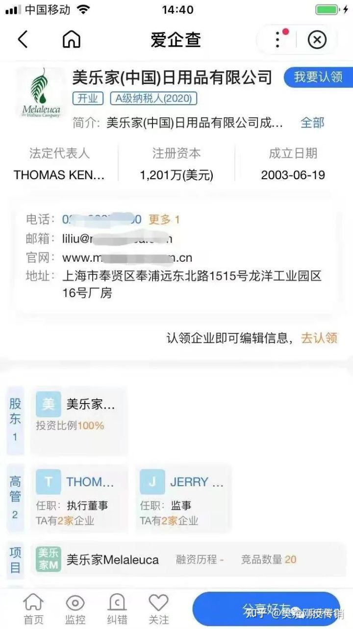 官方调查显示美乐家于1985年在美国成立,创始人范德士,从2003年开始入驻中国市场即现在的美乐家(中国)中国日用品有限公司,是一家外国法人独资企业,法定代表人为THOMAS KENDALL KNUTSON,注册资本为1201万美元。2007年11月的时候,公司获得了国家商务部的认可的直销资格,目前在国内16个城市开设了直营店铺,28家降生活馆。