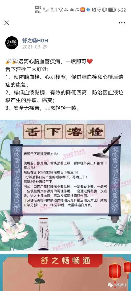 据公开宣传资料称,舒之畅HGH冷敷凝胶具有治疗并预防疾病的功效。甚至有代理商声称可治疗100种疾病。诸如糖尿病、心脏病、心脑血管疾病、骨质疏松、前列腺炎等多种疾策有改善的作用。甚至因血液垃圾产生的肿瘤、癌变,只需一喷即可。 由此可知舒之畅HGH冷敷凝胶并非属于医用凝胶,不具备医疗用途,更不可能拥有医疗效果。 同时根据企查查显示的资料表明,苏州健力空间降科技有限公司仅仅拥有食品经营许可证一种经营资质,冷敷凝胶并非食品显然不符规矩。