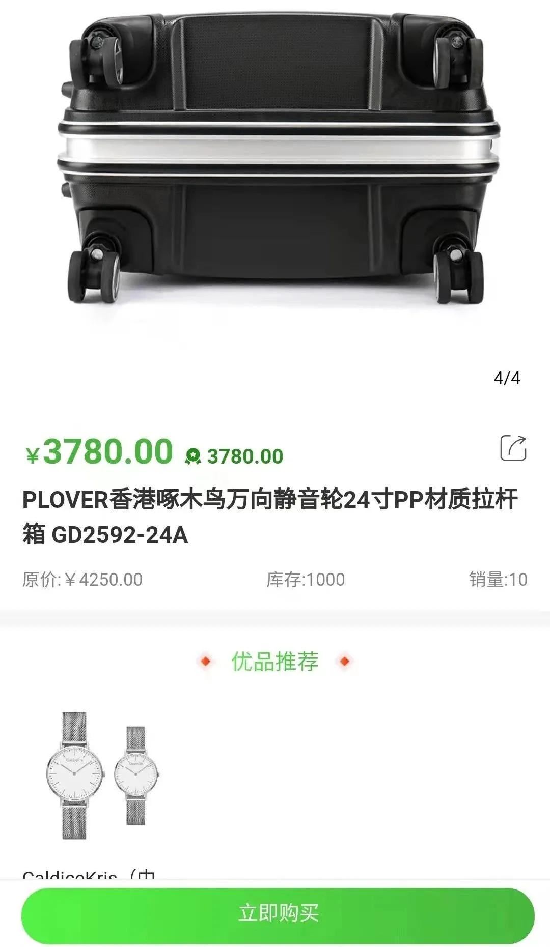 那么就有网友会说了,钱花了买物品后面还有钱赚难道不好吗?在正正广告商城,我们以一款名为PLOVER香港啄木鸟万向静音轮24寸PP材质拉杆箱 GD2592-24A的商品为例。该商品在正正商酬价为3780元,而在京东的标价为2448元,贵了1300多。朽发现该商城的东西全部都比网上甚至专卖店的价格贵上不少,有的甚至是网上的3倍之多。