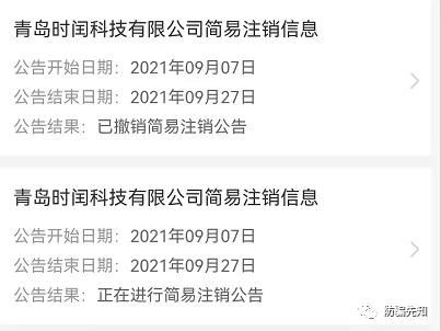 (图片来源:企查查) 此外,本网发现 青岛时闰科技有限公司有过注销企业记录。