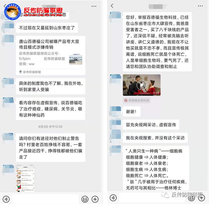 版权声明:本文由反传防骗联盟原创,未经授权不得转载。 反传防骗联盟讯:近日,一位来自山东枣庄的用户告诉反传防骗联盟自己的父亲购买了八千元百德福的产品,并多次参加公司的洗脑讲座,对该产品深信不疑,不让他买就是不忠不孝,让投诉人很是苦恼,于是向反传防骗联盟寻求帮助。