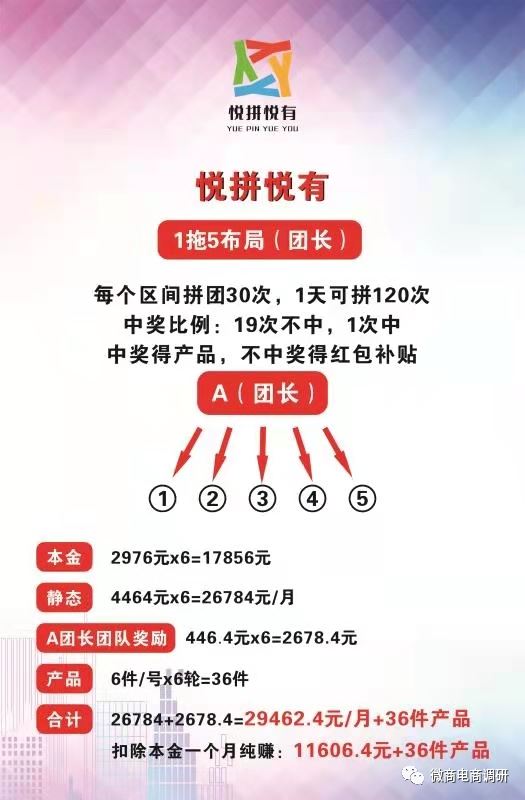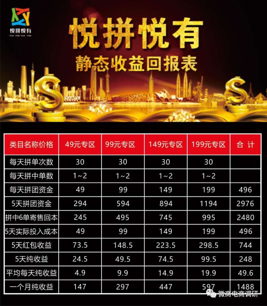 揭底模式,收益几何 在了解悦拼悦有现行的模式之前,不妨先讲一个小插曲。现如今,以悦拼悦有为名推广市场的项目也不止一个,比如武汉市明三禾科技股份有限公司旗下就有一个悦拼悦有,该平台其实就是拍乐购,和本文主角无关。