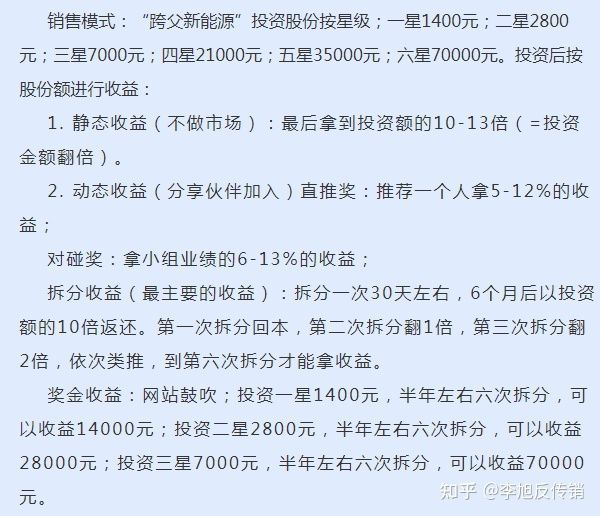 ▲新跨父能源代理商的微信宣传资料 该公司设立新能源会员管理平台,要求参加者交纳人民币2800元作为注册会员资格,以三个月回本、半年十倍收益的虚假宣传欺骗会员发展下线,并承诺不同数额的奖金。 被告人曹某某担任衡水市报单中心的负责人,通过线下讲课、微信介绍、口头宣传等方式发展下线。被告人曹某某直接发展下线会员46人,形成7个层级,涉案金额707270元。 检察院认为,被告人曹某某组织、领导传销活动,并按照一定的顺序组成层级,通过直接或间接发展下线人员谋取利益,扰乱经济秩序,其行为触犯了中华人民共和国刑法第二百四十二条之一的规定,犯罪事实清楚,证据确实、充分,应当以组织、领导传销活动罪追究其刑事责任。 [此文来源:李旭反传销团队,版权说明:以上文字及图片来源于网络,仅供学习和交流使用,不具有任何商业用途,其目的在于传递更多的信息,并不代表本平台赞同其观点。版权归原作者所有,如涉版权或来源标注有误,请及时和我们取得联系,我们将迅速处理,谢谢!] |