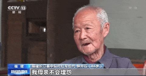 △老人的儿子钟开衍 在中复村 有一个默默践行30多年的誓言 小伙儿钟根基和同村青年共17人 一同报名参军 出发前他们起誓: 谁活着回来 谁就代其他兄弟孝敬父母! 最后,17人中仅有钟根基活了下来 战功累累的他 拒绝了组织上的工作安排,毅然回村务农 他省吃俭用接济弟兄们的父母 帮老人们挑水种地、处理后事 余生30多年 他都在默默践行当年的誓言