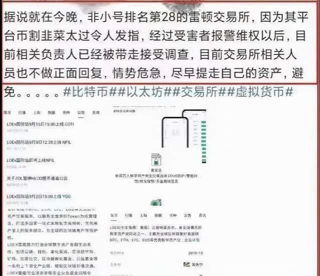 最新消息显示,雷盾LOEX交易所因频繁上线空气币割韭菜,涉嫌诈骗,被受害者维权报警,目前雷盾交易所国内技术团队已经被警方一窝端了。因为雷盾交易技术团队或被警方带走调查,因此目前雷盾交易所数据已经错乱,无法正常使用,或已经崩盘! ![]() ![]() 雷盾交易所号称是在2018年成立的,但实际业务开展起来,有一些影响力也就是在去年。币圈的老韭菜都知道,雷盾LOEX交易所在圈内割韭菜的手段可谓是臭名远扬。像这种国内交易所,明目张胆的割韭菜,出问题时迟早的。本次导致雷盾交易所直接被端的原因,或与四川省厅督办的GUCS矿机案有关。前一段时间央视报导过这个项目的,而且还抓捕了6个嫌疑人。 ![]() 于是就是拔出萝卜带出泥,雷盾被端。那这两者有什么关系呢?雷盾交易所和GUCS的关系很多人都不知道,这一段故事就这样被忽略在历史之中,原因就是雷盾有太多这样的项目。 其实雷盾交易所联合项目方多次的发币收割韭菜。从2020年2月份开始,前后陆续的发了5个币,其中4个币都收割后,被下架或隐藏交易ICS、ALC、ATSP、TBC(前4个已被下架或隐藏交易)、SEED(也完成了收割,高开带走,高低点跌幅高达-6500%倍)、BRCE贝拉协议(上架后又被迅速下架)。幕后黑手就在这其中收割了一波又一波的韭菜。而这次栽在GUCS麒麟币上也算是天理昭昭,报应不爽吧。 ![]() 其实雷盾交易所还有很多其他的问题。比如泄露用户关键数据,包括持仓、充提币、交易等。所谓的驾驶舱,就是让用户裸奔,让项目控盘割韭菜。用户买入/卖出、成交数量、成交金额、交易时间、持仓量等交易隐私数据均借平台推出的「驾驶舱计划」暴露在项目和做市商面前。所以为什么你一买币就跌,一卖就涨,因为不是笑话,庄家就是针对你! ![]() 而且也有媒体爆料,投资者的账户被雷盾交易所无缘无故的冻结,不仅不能提币,连交易都无法进行,该名投资者账户有本金,也有部分盈利。 ![]()