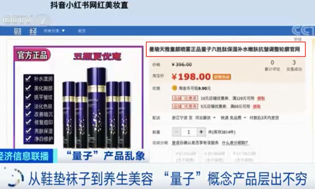 就曼瑜天雅童颜喷雾产品使用后过敏的具体原因,以及消费者质疑曼瑜天雅产品‘嬷嬷宝Ⅰ’产品介绍中出现‘通经活络,调节气血’文字是否有相关医学证明,中国质量新闻网致函广州曼瑜天雅生物科技有限公司,但截至发稿,并未收到对方的正面回复。 另据北京商报报道,今年4月,央视揭秘量子概念产品话题曾登上热搜,其中涉及产品包括护肤品、医美用品等。央视的报道画面中显示,宣称减龄10岁不是梦的量子保湿喷雾,名为曼瑜天雅,产品在多平台宣称具有抚平皱纹、减龄、调整轮廓等功效。其淘宝客服表示,曼瑜天雅产品都使用了量子技术,相比普通产品更容易吸收。 针对市吃曼瑜天雅的质疑声,中国质量新闻网将持续关注事态发展。 |