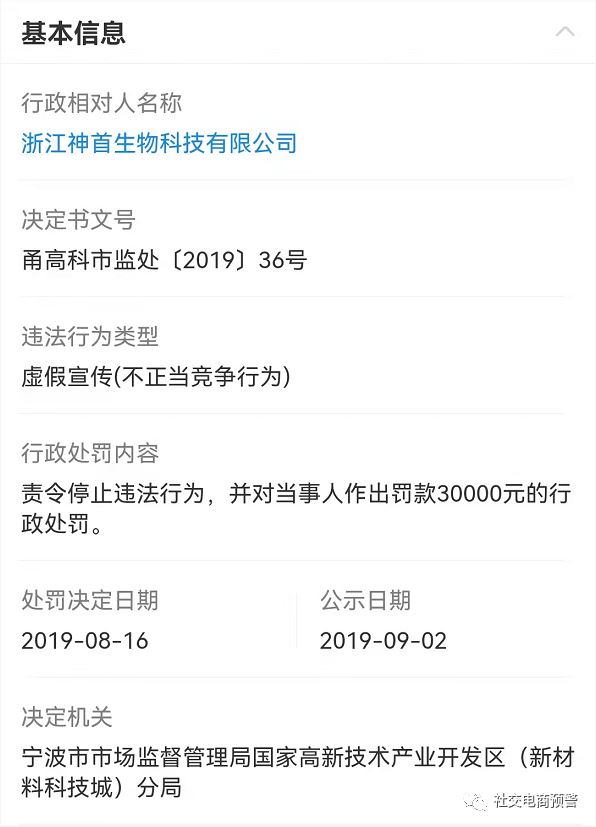 图片资料来源于企查查APP 2019年,浙江神首因虚假宣传(不正当竞争行为)遭处罚3万元。