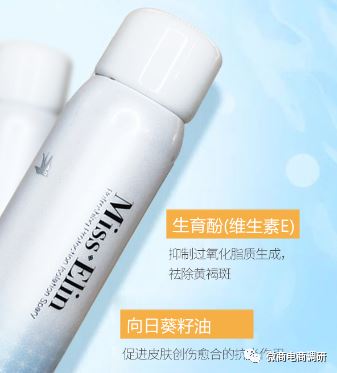 在上篇报道中,我们了解到了蜜诗艾妮旗下的部分产品是否真的具有提高免疫力和淡斑效果,在本篇报道中,我们将从其他几款产品开始说起。 系列产品,医疗效果? 一、蜜诗艾妮清新倍护隔离喷雾 据官方公众号介绍,这款产品的成分生育酚、向日葵籽油、小雨燕窝提取物能够去除黄褐斑,淡化色斑,并且还有促进皮肤创伤愈合的抗炎作用。