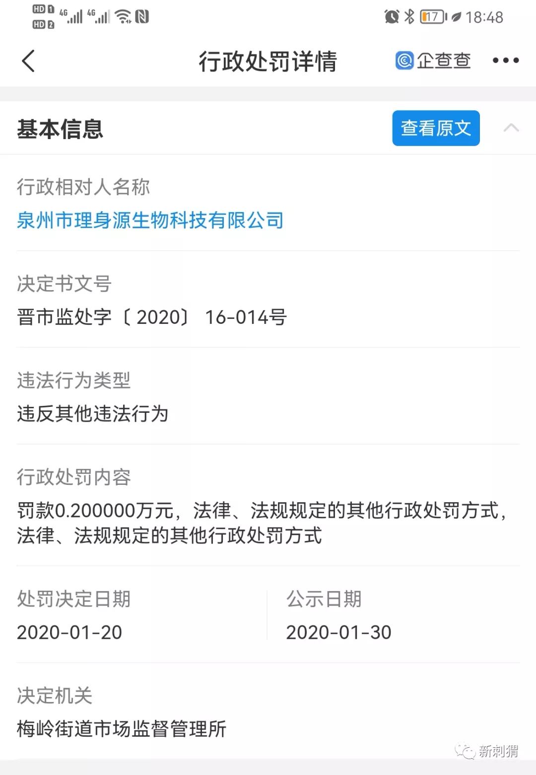 劣迹斑斑的理身源生物科技 那么让众多消费者纷纷掏钱成为代理商的理身源公司到底是一家怎么样的公司?带着这样的疑问朽在企查查上查阅了该公司的相关信息。据企查查上显示的信息可以发现, 泉州市理身源生物科技有限公司成立于2015,法定代表人为黄新华,注册资本为100万元人民币,在短短6年的时间内先后进行了8次信息变更,并有3次行政处罚记录,分别为2017年8月30日、2019年4月8日、2020年1月20日等因违反相关规定被有关部门给予行政处罚。由此可见该公司在日常经营中确实存在不少经营隐患,并出现过登记的经营场所无法联系的情况。不仅如此,该公司的合作人刘春英旗下的广州市荔湾区路宝鞋业行也有多达5项的经营异常的显示,让人不得不对该公司的诚信问题打上一个大大的问号?让人不禁怀疑该公司的经营状况是否正常。