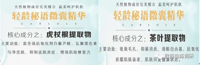 (图:微信小程序嘉珀莉商城) 经查,该款产品同样是国产非特殊用途化妆品,备案编号为粤G妆网备字2018066955。 三、嘉珀莉轻龄秘语微囊精华 在公众号法国嘉珀莉中,嘉珀莉轻龄秘语微囊精华的成分虎杖提取物、茶叶提取物和光果甘草提取物被介绍为能够美白,甚至还能够抑菌消炎、抑制皮肤炎症。