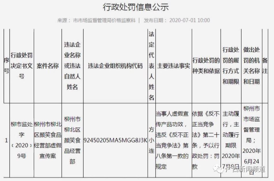 然而,商家所宣传的这些功效均未经医学检验鉴定,去年6月,柳州市市场监管局针对该经营者虚假宣传的不正当竞争行为,处以罚款50万元的行政处罚。