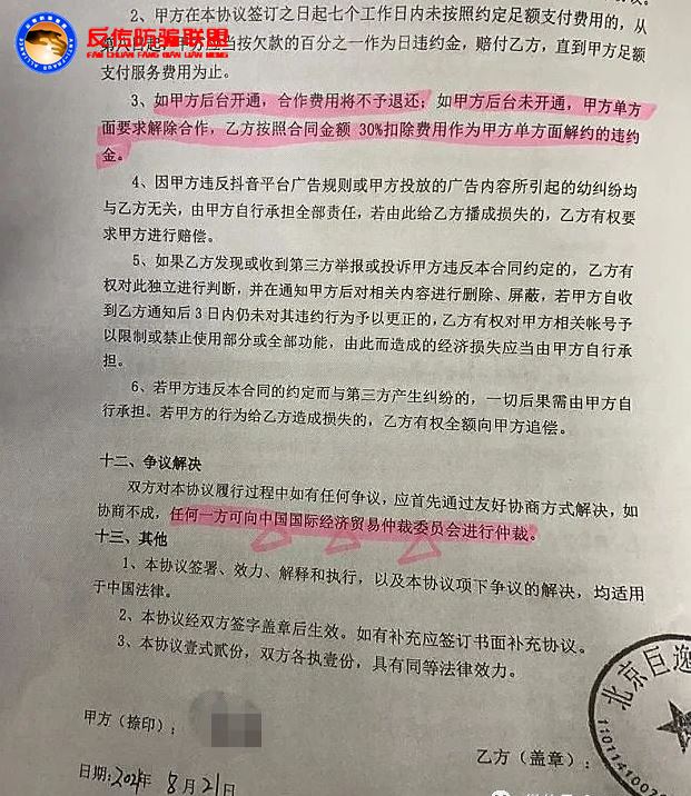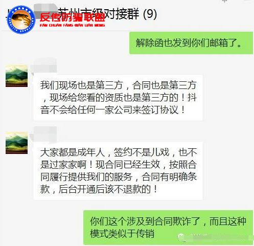 跟他们提出解约之后,就漏出了原本的面目,之前一直说的抖音官方项目,帮抖音招商,现在就变成了第三方,而且后台一开通就不给你退款。而且合同里也有很多猫腻。