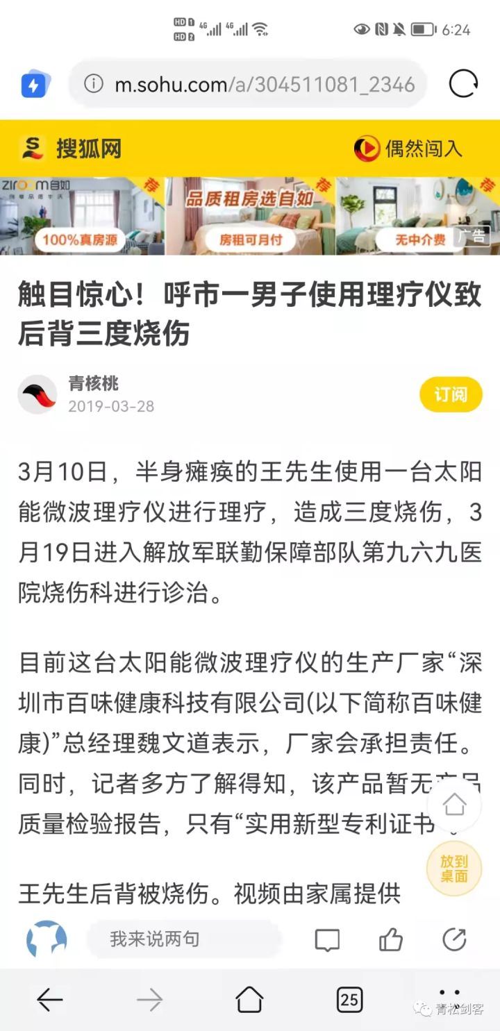 无质量认证理疗仪曾烧伤消费者 根据相关媒体报道2019年一消费者使用百草太兴太阳能微波理疗仪造成后背三度烧伤而当时该产品并未取得产品质量检验报告。