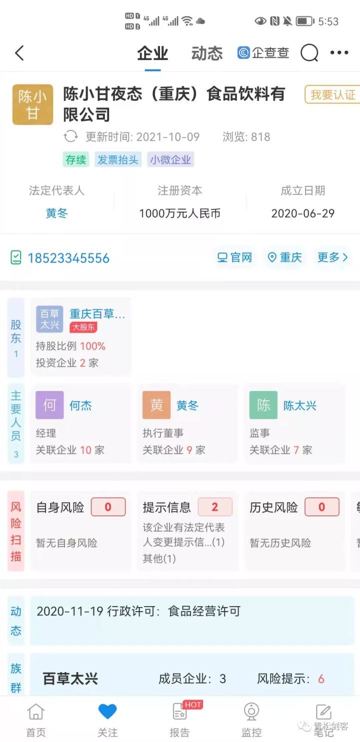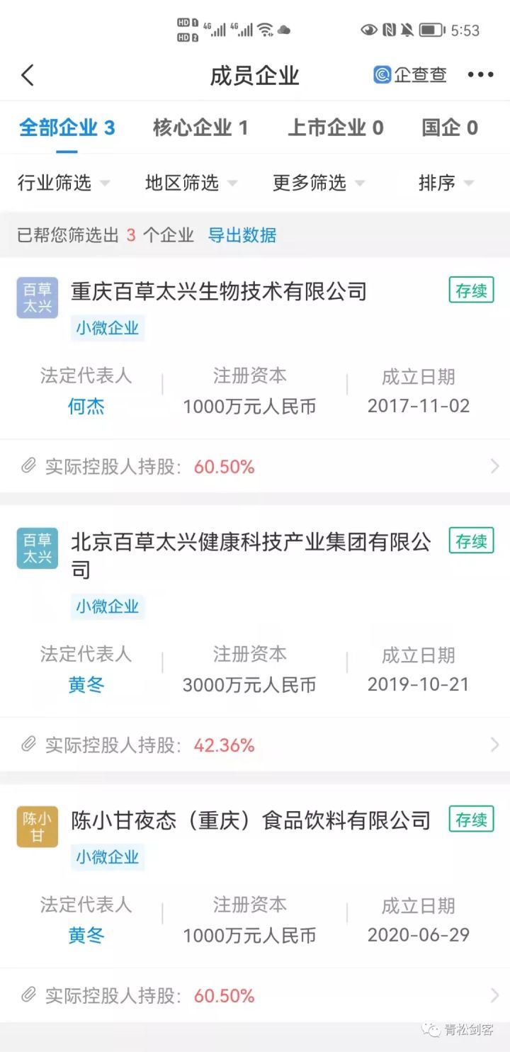 集团旗下有重庆百草太兴生物技术有限公司,陈小甘夜态(重庆)食品饮料公司,根据宣传百草太兴首席研发中医博士陈太兴为陈小甘夜态(重庆)食品有限公司监事