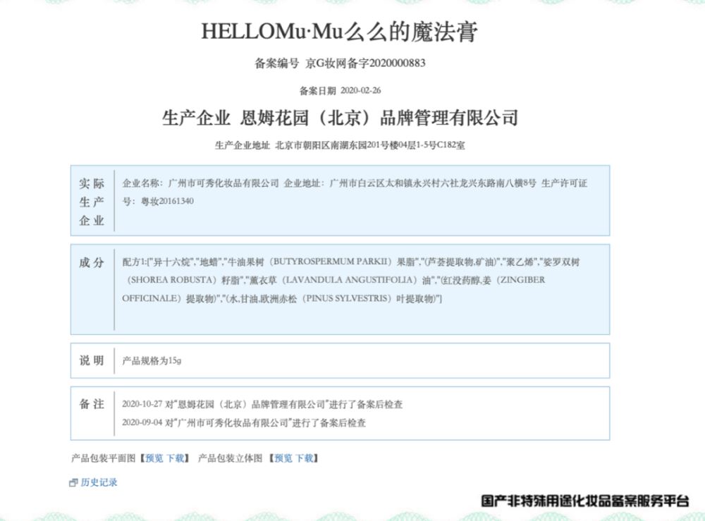 二级质谱中,目标信号打出了质荷比为120.0502的主要碎片离子峰,可以双重实锤。 凯喜博士DrCash还指出,恩姆花园另一款名为恩姆花园欧洲赤松魔法膏也含有羟苯基丙酰胺苯甲酸,并且同样没有在产品标签中标示。 美商社查询国家药监局官网发现,么么的魔法膏全称为HELLOMu·Mu么么的魔法膏,其成分备案显示并不含羟苯基丙酰胺苯甲酸,另一款恩姆花园欧洲赤松魔法膏的成分表中也不含羟苯基丙酰胺苯甲酸。