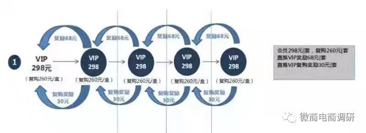 Vip既是消费者,也是分享者。VIP推荐认识的或者不认识的朋友购买产品可以获得收益。当新人通过扫二维码,购买298元的护颜精华成为VIP,每套产品都可以获得直推奖励68元,朱士荣在直播中称,推荐一人使用奖励68元,推荐4个人使用就有270多元钱的奖励,即可回本。当VIP二次复购的时候,每盒产品售价260元,当会员推荐的用户他复购的时候,系统奖励上级VIP会员30元钱。加入vip三天销售一套,一个月可以10套,一年就有120个用户,每个用户可以获得直推奖励奖励68元,就可以拿到8100多元的奖励,这些VIP用户每复购一套,自己还能拿到30元钱奖励。 作为普通的VIP,只能拿自己直接推荐的用户奖励和他的复购奖励。但是间接推荐的奖励拿不到。如果想要想拿到后面的收益,则需要升级为门店代理或者总代理。