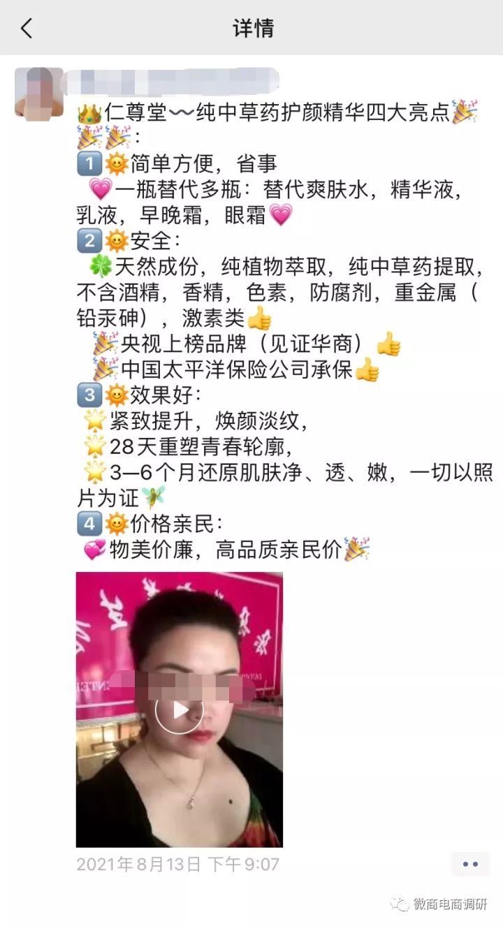 齐鲁仁尊堂护颜精华液产品备案 实际上,齐鲁仁尊堂护颜精华液的备案编号是粤G妆网备字2020010812,为国产非特殊用途化妆品,由广州市草缘香生物科技有限公司生产。根据我国化妆品监督管理条例第十六条规定:用于染发、烫发、祛斑美白、防晒、防脱发的化妆品以及宣称新功效的化妆品为特殊化妆品。特殊化妆品以外的化妆品为普通化妆品。而美白淡斑的功能,无疑属于特殊用途化妆品才能够宣传的。并且我国反不正当竞争法第八条也有所规定:经营者不得对其商品的性能、功能、质量、销售状况、用户评价、曾获荣誉等作虚假或者引人误解的商业宣传,欺骗、误导消费者。看来,上述产品宣传或涉及虚假夸大宣传。 至于上述资料涉及到的虚假宣传该如何处罚,广告法第五十五条第一款规定,违反本法规定,发布虚假广告的,由工商行政管理部门责令停止发布广告,责令广告主在相应范围内消除影响,处广告费用三倍以上五倍以下的罚款,广告费用无法计算或者明显偏低的,处二十万元以上一百万元以下的罚款。 并且代理商们还称自己的产品由太平洋保险承保,根据我国化妆品标签管理办法第二十一条也有所规定:化妆品标签禁止标注或宣称下列内容:(十一)含有保险公司承保无效退款等承诺性语言。 为了推广仁尊堂的产品,许多代理商晒出了一些顾客使用案例来证明产品的有效性,有的代理商称使用了该产品排毒了,淡化了色斑;还有推广人员称这款产品年女老少甚至孕妇都可以用,更有代理商晒出了顾客使用前后对比图来宣传该产品,美白淡斑的字样也在聊天记录中时常见到。 毋庸置疑,这些案例的宣传还涉及使用他人名义保证或以暗示方法使人误解其效用的行为。有业内人士指出,任何产品的广告都应当真实、合法,不得使用他人名义保证或者暗示产品功效误导消费者。凡是有夸大功能、虚假宣传或者其他容易给消费者造成误解的,违反相关法律法规的内容,或涉嫌虚假宣传。 四级代理 违背现行法规
