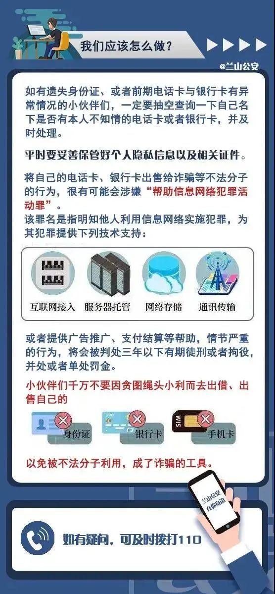 把自己名下的银行卡、手机卡出售 就能轻松赚外快? ![]() 不光如此 中间商还能赚取好几倍差价! 这件事听起来相当诱人 可倘若真的这样做了 一旦不法分子借机从事违法犯罪活动 实名办卡人就变成替罪羊 还会构成犯罪 ![]() 案件回顾 近日,兰山公安分局刑侦大队反诈中心接市局推送线索,有多个诈骗电话信号归属地在兰山。反诈中心民警立即行动,对线索开展侦查。通过一系列分析研判,民警锁定了在临沂市一医院内工作的王某。在进一步掌握王某的犯罪证据后,民警迅速出击,于9月27日在该医院将王某和其同伙丁某抓获。 ![]() 经审讯,犯罪嫌疑人王某对自己帮助信息网络犯罪活动的行为供认不讳。今年3月底,他在贴吧上看到一条出租微信号、手机卡可以赚钱的信息,便立即与对方取得联系。对方告诉王某,想要赚钱可以出售手机卡和帮助其投放GOIP设备,只要把设备插上手机卡维持正常运营就可以,操作十分简单,同时承诺如果王某能保证设备正常运营,可以得到每天500元的报酬。赚钱心切的王某立即答应了对方,拿到设备后安装到了自己工作的地方。 ![]() 一段时间后,王某由于工作性质无法一直盯着设备,便拉拢同事丁某一起操作,王某每隔几天会给丁某几百元作为相应的报酬。王某自以为找到了一个轻松赚钱的好项目,他丝毫没有想过那些受害人被骗后的无助和凄惨,更没有想到公安机关早已锁定了他的身份…… ![]() 目前,帮助信息网络犯罪活动犯罪嫌疑人王某、丁某已被兰山公安分局依法刑事拘留,案件正在进一步侦查中。 断卡行动与每个人息息相关! 快看过来! ![]() ![]() ![]() 法律链接 中华人民共和国刑法第二百八十七条之二帮助信息网络犯罪活动罪 明知他人利用信息网络实施犯罪,为其犯罪提供互联网接入、服务器托管、网络存储、通讯传输等技术支持,或者提供广告推广、支付结算等帮助,情节严重的,处三年以下有期徒刑或者拘役,并处或者单处罚金。 单位犯前款罪的,对单位判处罚金,并对其直接负责的主管人员和其他直接责任人员,依照第一款的规定处罚。 有前两款行为,同时构成其他犯罪的,依照处罚较重的规定定罪处罚。 警方提醒 天下没有免费的午餐。 任何单位、个人都不得 非法出租、出借、出售 本人实名制银行卡和手机卡, 避免本人实名制银行卡、手机卡被用于 实施诈骗、骚扰等违法犯罪活动, 否则将要承担因此引发的相关民事责任, 情节严重的还将会被追究刑事责任! 来源:兰山公安 本平台部分文章来源或改编自互联网和其他公众号,主要目的在于分享信息,让更多的人获取需要的资讯,版权归原作者所有,仅供读者参考,如有侵权请告知我们,我们将及时删除! |