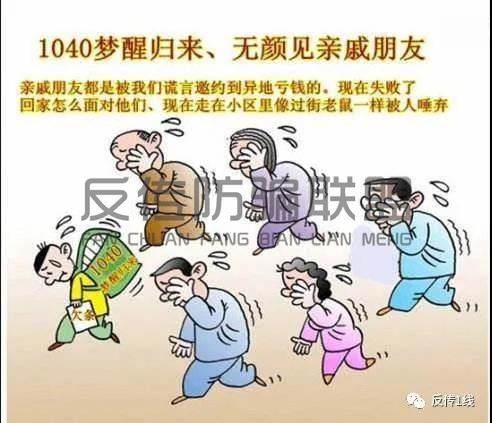 第三类――忘本类 这一类老总在金钱和良知两者之间,他们毅然决然地选择了金钱,这种人当初进入1040阳光工程可以说也是受害者,但是从上平台这一刻起他们就变成了名副其实的骗子。他们马上擦干眼泪,换一身靓装,强颜欢笑,故作激情,继续遥控团队为自已敛财。但是他们做贼心虚,胆小如鼠,骗了百十号人,赚了百八十万,朋友不敢见、家乡不敢回,要么在外地买套房子居住下来,要么就是长期在外漂泊。 第四类――伏法类 这一类老总他们的良知已荡然无存,只认钱财,贪婪至极,并且胆大妄为。他们为了蒙骗和控制团队谎言说尽,为了逃避公安的打击诡计用遍。他们也许开上了名车,买上了豪宅,但好景不长,恶有恶报,法网恢恢,疏而不漏,最终被公安绳之以法送进了监牢,没收非法所得,从此在监狱里会很终身。 第五类――恶魔类 这一类老总他们也许智商很高,也许情商很高,也许财运亨通,也许他们骨子里就有骗子的基因。他们骗人毫无愧疚心理,他们在行业里一路顺风顺水,团队本身发展很快,三五年之内团队发展有几十甚至几百人。他们伞下的人既是受害者又是财富的收敛机器,数百万、上千万不义之财都归他们所有了。他们得到这些钱,投资实体,摇身一变成为企业家。但也有的是去其它城市继续搞传销事业,甚至还会创新模式,或者搞一些金融理财等等,他们有可能逃脱了法律的束缚,但终究逃脱不了良心的谴责。