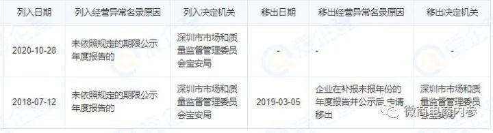 经查,李园举弟目前还是深圳市炮爷电子商务有限公的股东之一,而该公司在2020年10月28日已因未依照规定的期限公示年度报告被深圳市市场和质量监督管理委员会宝安局列入经营异常名录,至今未被移除。