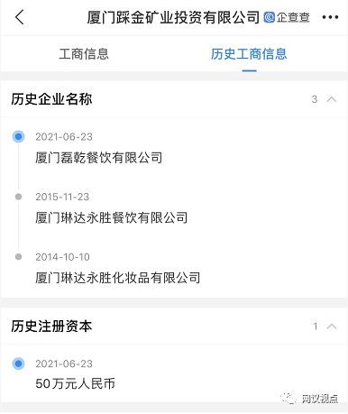 近日,中海财经收到来自厦门的胡先生的咨询,厦门踩金矿业投资有限公司现宣传投资购买黄金,零风险,能致富,支持回购是否安全,投资黄金不且有2倍的静态收益,做团队发展下线卖黄金不且能加速静态收益的释放,还能赚补贴,进得越早,团队做得越大,赚得越多。根据传销禁止条例,该公司以拉人头发展人员、采取团队计酬的方式已涉嫌传销。 根据厦门踩金矿业投资有限公司对外宣传资料显示,现已投资山东烟台东金矿业,在企查查上查询,未看到有该公司任何入股信息。厦门踩金矿业投资有限公司成立于2013年7月5日,注册资金为6313万元人民币,实缴50万元人民币,参保人数仅4人,该公司成立时间虽然有长达8年多,但之前都不是这个公司名称,该公司在8年多的运营时间里有过3次企业名称变更,之前主要的营业范围是化妆品、餐饮,在2021年6月23日变更为厦门踩金矿业投资有限公司,所谓对外投资的山东程麦业有限公司于2021年8月12日成立,实缴资金为0元,看到以上相关信息,会不会感觉是一家皮包公司。