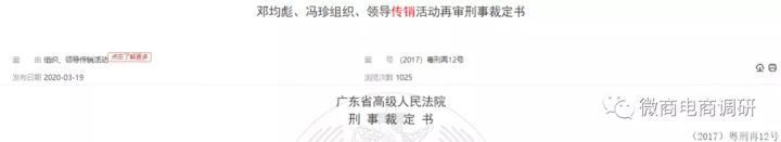 法院认为,黄赠安加入的九天绿营销公司以推销商品为名,要求参加者以购买商品的方式获得加入资格,并按一定的顺序组成层级,间接以发展人员的数量作为计酬返利的依据,引诱参加者继续发展他人参加,骗取财物,黄赠安加入的是未取得国家商务部直销资格的传销组织。黄赠安是龙南片区的销售主任,其组织内部参与传销活动人员达一百多人且层级在三级以上,法院最终判决黄赠安犯组织、领导传销活动罪,判处拘役四个月,并处罚金20000元;追缴违法所得28468.8元,予以没收上缴国库。另外一则裁判文书邓均彪、冯珍组织、领导传销活动再审刑事裁定书所披露的内容也无外其中。