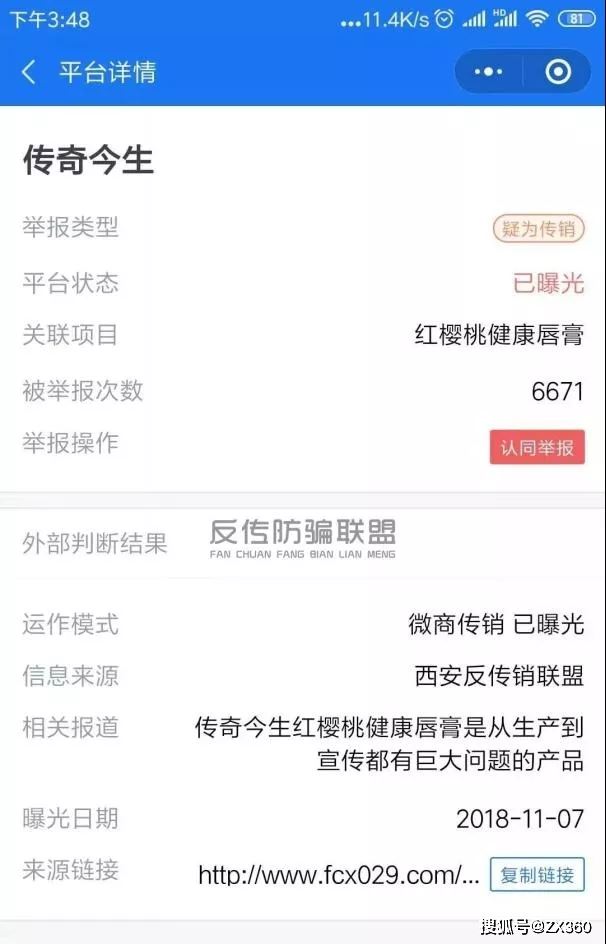 2018年,传奇今生对外公布,品牌每秒销售一支口红,2019年更达到每秒销售2支口红。巅峰期还曾经邀请明星代言、在央视做过广告,其变色唇膏也曾经被誉为微商经典爆品。 一、传奇今生长期舆情高发 传奇今生的爆发,伴生的是其舆情此起彼伏。这些舆情主要有两个层面:一种是媒体曝光的涉传新闻,另一种则是由创业失败的代理商发起的负面情绪。 首先是媒体曝光的涉传、违规宣传、产品质量问题。 早在2018-2019年间,有关传奇今生涉传的新闻报道就频频出现在网络媒体上。其被指营销模式涉嫌变相传销,拉人头,交纳入门费,多层计酬等。早在2018年,在灵鲲金融风险查询中心平台上,关于传奇今生口红唇膏的涉传举报投诉就已经达到多达6671条。自媒体反传防骗联盟认为,传奇今生唇膏的销售模式和传销行为并没有本质上的区别。 而代理商常用的违规虚假宣传、夸大宣传方式也饱受诟病。如,传奇今生被曝用软件造假骗人,晒假单造势,夸大宣传,夸张炫富,发展下线。而传奇今生代理口中宣传的千人千色,成分天然,缔造降,孕妇和小孩都可以使用,也被质疑存在违规夸大宣传。