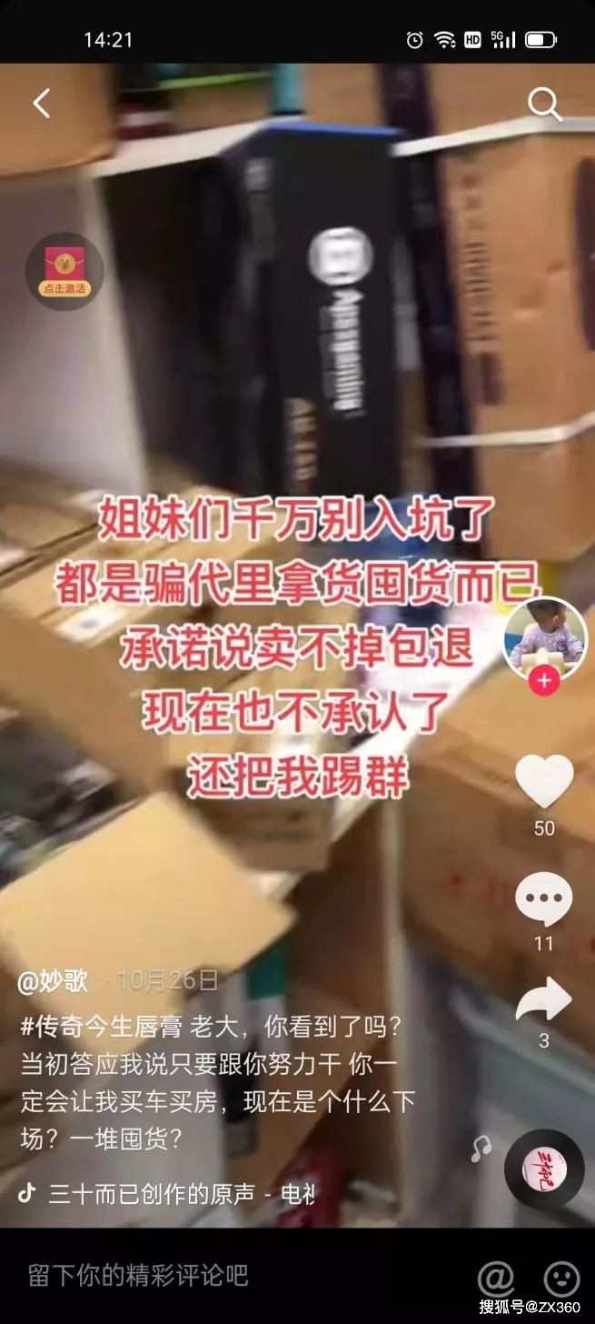 (代理商在抖音上的负面舆情发酵) 传奇今生的市场制度,一面是热闹的爆单嘲,另一面则是代理商以高价从公司进货,低价在市场上甩卖,造成了一种非常奇怪的画面。看似产品已经卖出,但实质只是囤货。 事实上,2019年爱库存、甩宝团、甩甩宝宝等平台爆发,主要就是大量微商产品去库存、清货甩卖需求催生的。 四、停留在营销花样创新,后续研发和服务动力不足 传奇今生的爆款口红唇膏曾经是微商界的爆品标杆,其营销点千人千色,随着人的体温及PH值变色,孕妇和小孩都可以使用曾经被视为牢牢抓住了用户的眼球。传奇今生也极尽所能的将这一营销点大力的推广,从而造就了一个经典的爆品案例。但随着竞争的不断深入,这一模式也暴露出了它的弊端:缺乏产品创新的真正内涵,以噱头、花哨的概念来夺人眼球,并存在夸大宣传、过度营销的嫌疑。 而从产品开发的规划上来看,传奇今生从进入微商之后,长期以这一款单品来开拓市场,后续产品创新乏力。同时,相关的售后服务跟不上市场的需要,在代理退换货问题上处置比较消极。 五、传奇今生风险管控分析 今天,传奇今生的许多问题仍然存在,例如唇膏清货一直在各大平台上存在,涉传的阴影也仍然挥之不去。那么,传奇今生在风险管控上存在哪些不当及有待改进的地方呢? 高危的涉传、囤货代理制度 微商代理制度实质上经历了一定的演化、吸收、借鉴。 起初的微商只采用单层次的太阳线分销,依托微信朋友圈的巨大体量进行快速裂变。但随着竞争的深入,其代理制度大幅的向多层次靠拢,并且对代理商的透支越来越严重,传奇今生就是一个典型的表现。这就导致平台容易与涉传伴生,各类媒体舆情曝光事件多发。微商平台启盘快,但是崩盘也快,业绩极其不稳定,市场上产品虚假宣传、夸大宣传此起彼伏。