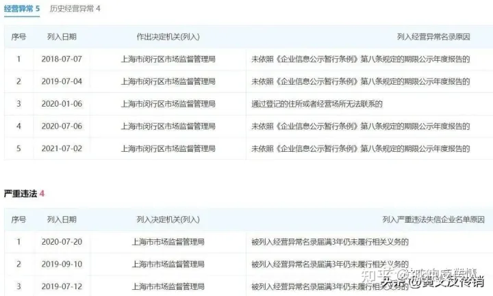 据悉,此人名下共有5家企业,其中的上海高臻投资咨询有限公司在被上海市闵行区市场监督管理局多次列入经营异常名录之后,又被上海市市场监督管理局多次列入到了严重违法失信企业名单。