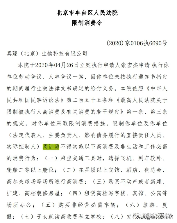 周训勇本人也已被法院出示了限制消费令。