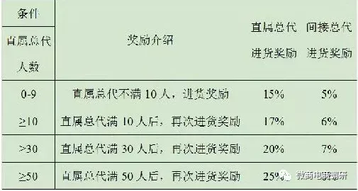 除了能够赚取零售利润和代理间的差价外,名后的总代理还有直属推荐总代奖和间接推荐总代奖。总代推荐直属总代的人数不足10人时,可获得直属总代15%的进货奖励,间接总代5%的进货奖励;直属总代的人数为10-30人时,可获得直属总代17%的进货奖励,间接总代6%的进货奖励;直属总代的人数为31-49人时,可获得直属总代20%的进货奖励,间接总代7%的进货奖励;直属总代的人数满50人后,可获得直属总代25%的进货奖励,间接总代8%的进货奖励。