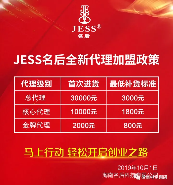 文章最后,我们再来了解一下名后的奖金制度。据了解名后的代理分为总代理、核心代理和金牌代理。总代理首次进货为3万元,最低补货标准3000元;核心代理首次进货为1万元,最低补货标准1800元;金牌代理首次进货为2000元,最低补货标准800元。