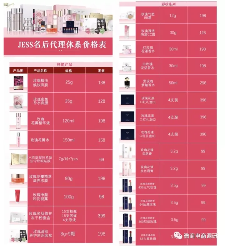 这三个级别的代理拿货折扣也不一样。三个级别的代理折扣分别是金牌代理折扣为产品原价的6.5折左右;核心代理折为产品原价的4.5折左右;总代理折扣为产品原价的3.3折左右,而且核心代理和金牌代理将永久性从总代理处拿货,总代理可永久性享受产品差价。下图为名后产品具体的价格:
