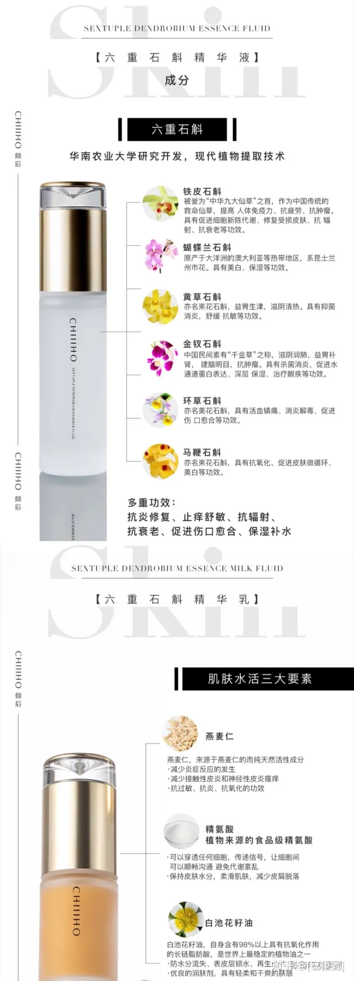 不仅如此,礼盒里的三款产品还对所含成分进行了详细的解说:洗面奶所含有的母菊是最受欢迎的草药产品原料,能够抗发炎、抗癌;精华液所含有的蝴蝶兰石斛具有美白、保湿等功效,环草石斛具有活血镇痛、消炎解毒、促进伤口愈合的功效;而精华乳含有的燕麦仁能够抗过敏、抗炎、抗氧化等等。